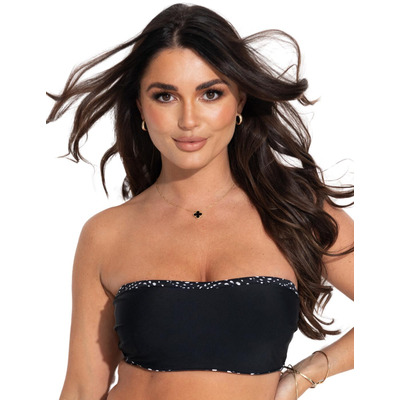 Adding a touch of playful sophistication, the cheeky criss-cross pattern on top of the cups gives this simplistic design a little something extra. This unique detail elevates the overall look of the bikini top, making it stand out from the crowd. The criss-cross pattern adds visual interest and a modern twist to the classic balcony style.